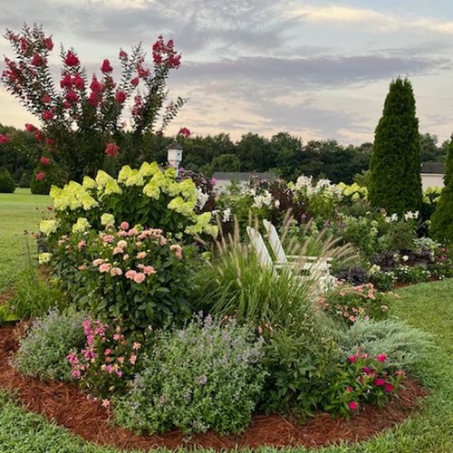 We’re heading to the Mid-Atlantic coast today to visit a new garden—brand new to Garden Photo of the Day and a relatively new creation on freshly developed property. These beautiful beds were cultivated by Teresa Eutsler in Worcester County, Maryland after moving from an extensive garden they tended for over 30 years. Looking to reduce the time she spent working in her new garden, Teresa aimed to create a low-maintenance landscape, but her passion for plants had other plans. She now has a stunning garden that is easy to care for, but she has too much fun experimenting in to stay out of for long.