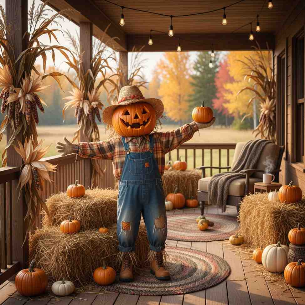 Add accents like corn stalks, lanterns, or scarecrows to make the scene fuller. The layered textures give your porch a rich, abundant look.