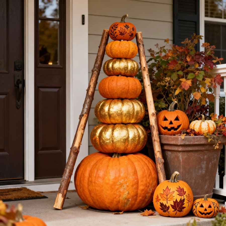 Choose a gradual size change—large at the bottom, medium in the middle, small on top—for a balanced look. You can also paint or carve patterns into the pumpkins before stacking for added flair.