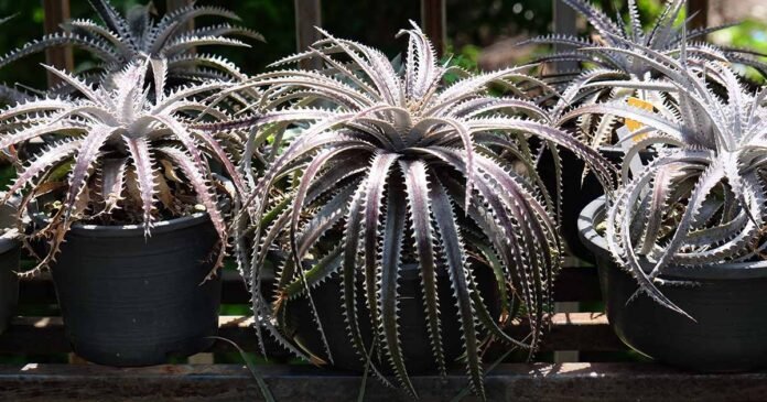 Known as wide-leaf dyckia, D. platyphylla has broader leaves than many other species, though each still tapers to a point.