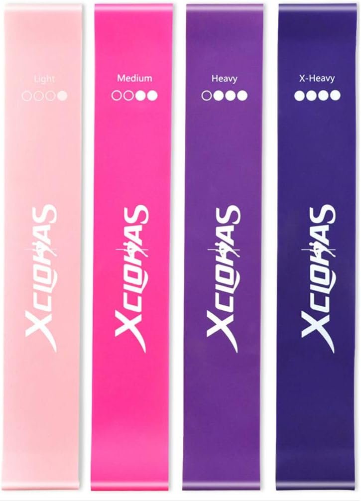 【Specialized for Women】Our Gradient Color Resistance Bands Set are Especially Designed for Women. It Comes with 4 Gradient Color Loop Bands with Strength Icon in Pink Container Bag. Thickness and Resistance: Light – 0.5mm – 10~15lbs; Medium – 0.7mm – 15~20lbs, Heavy – 0.9mm – 20~30lbs, X-Heavy – 1.1mm – 30~40lbs. Please Contact us for E-book of Instruction.