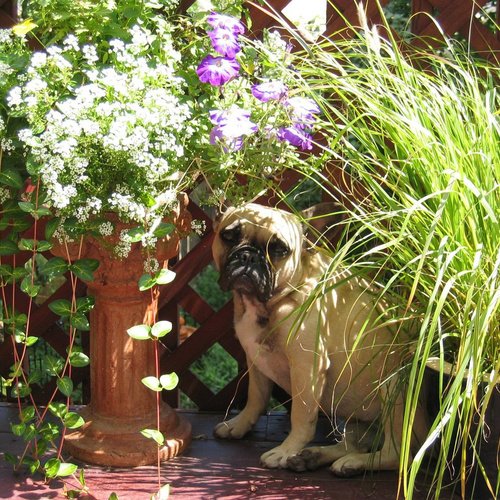 And it looks like Leslie’s pup also enjoys her container plantings! On a sunny day, the space under her sprawling designs becomes the perfect spot to enjoy some shade.