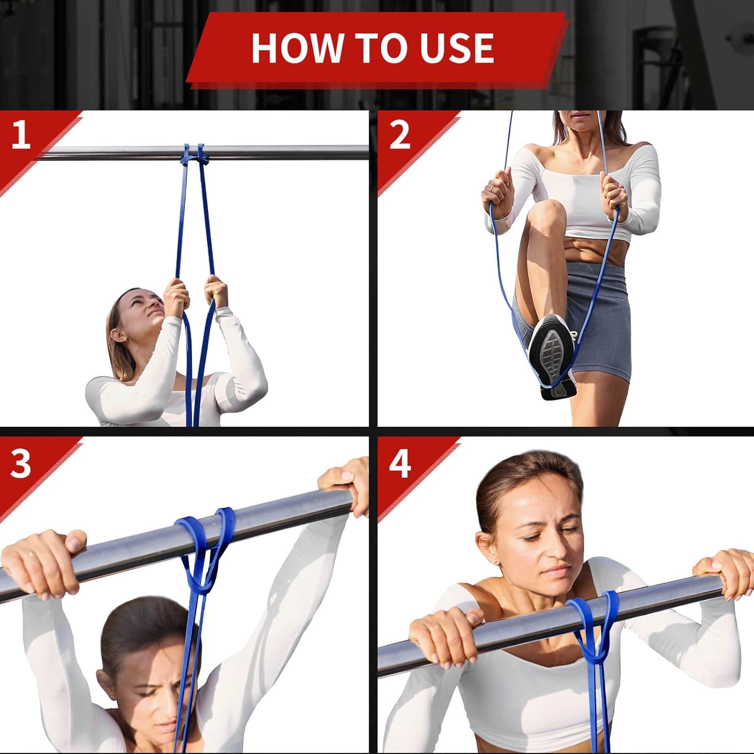 3 Different Resistance Levels: The pull up assist bands have 3 different levels of resistance: Blue resistance band (10-20 lb), Purple resistance band (20-35 lb), Red resistance band (35-60 lb), Three colors represent three levels of resistance,you can gradually increase your resistance through training you.You can use resistance bands individually or in combination according to your own needs.