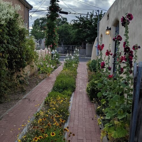 I’m back again with your daily dose of garden-y goodness! Today, I wanted to take the opportunity to share some photos of a darling little driveway garden I found in Albuquerque, New Mexico. This trip was some time ago, but I’ve never really been able to shake how special this space felt. It is such a great example of how what you can do with limited space, and how you can make any area feel magical and inviting with the right mix of plants.