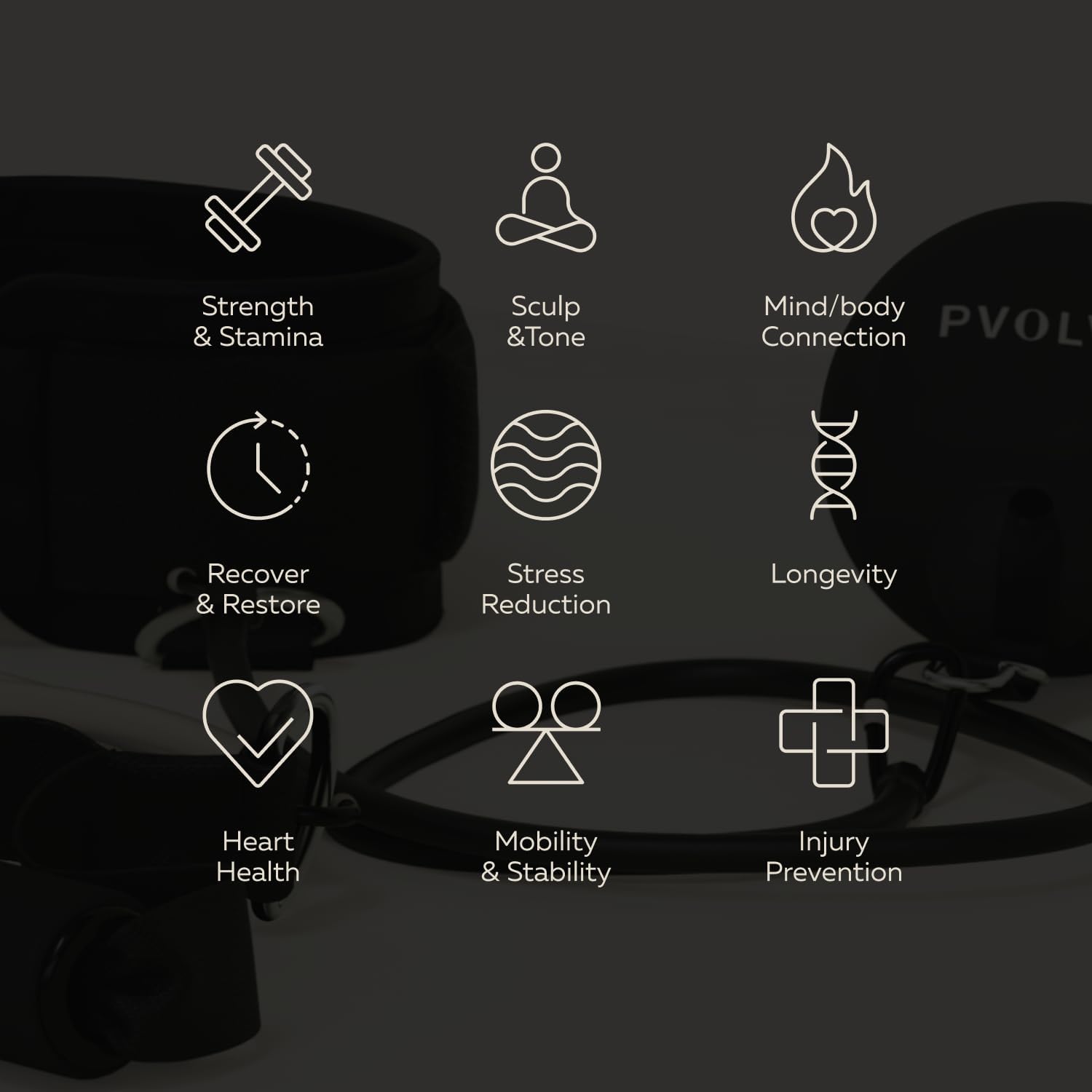 The PVOLVE METHOD: P.volve helps you feel and look your best by using the fundamentals of body mechanics and joint mobility to ignite whole muscle groups. The results? Less pain, better performance and the strongest you ever.