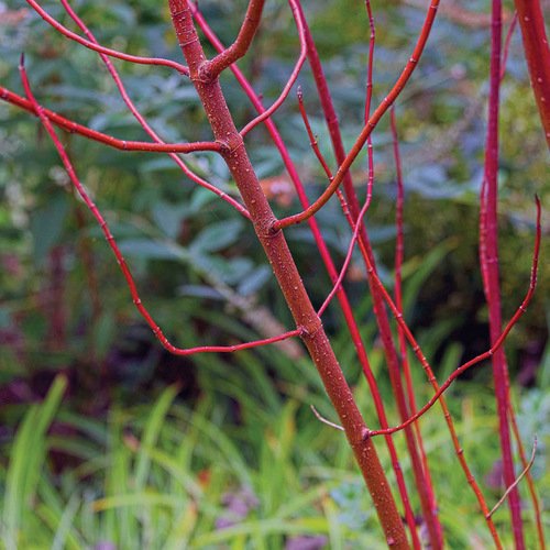 I first fell in love with red twig dogwoods about 25 years ago when a gardening friend took me to visit another of her friends. The sweet woman pointed out a large, multi-stemmed shrub growing in the middle of her lawn. She told me it was a red twig dogwood, and I thought to myself, “What a strange-looking dogwood.” It was midsummer, and the shrub did not look all that appealing to me, but I was so plant hungry at the time that I gladly accepted two suckers she dug out for me. Was I surprised that winter when the stems turned a brilliant red! I wanted more, so I asked about red twig dogwoods at local nurseries but with no success. I eventually learned that they are highly susceptible to stem canker and blight, especially in the South. Still, red twig dogwoods are hard to beat for their colorful show in winter, so I continued to plant them, typically getting five or so years of enjoyment out of a plant before it would succumb to disease. The way I figured, potato chips don’t last long either, but I buy them over and over.