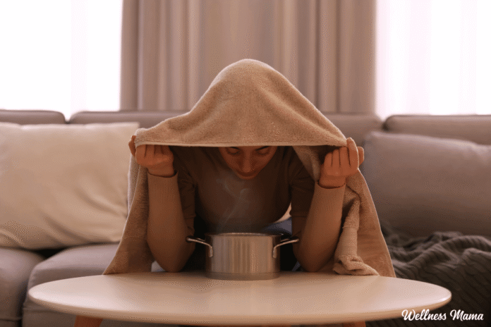 Turn the heat off and lean over the pot with your eyes closed. Be sure not to get too close or you’ll get a steam burn! I’ve found that as the water cools I’ll edge closer. You can also drape a towel over your head to trap more of the steam in.