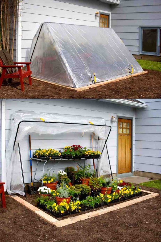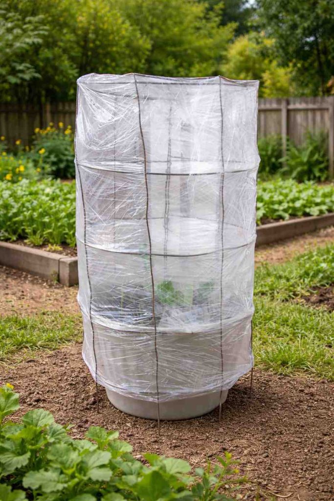 Build a simple low-profile frame and cover it tightly to trap warmth. This mini greenhouse protects young plants from cold nights and extends the growing season without taking up much space.