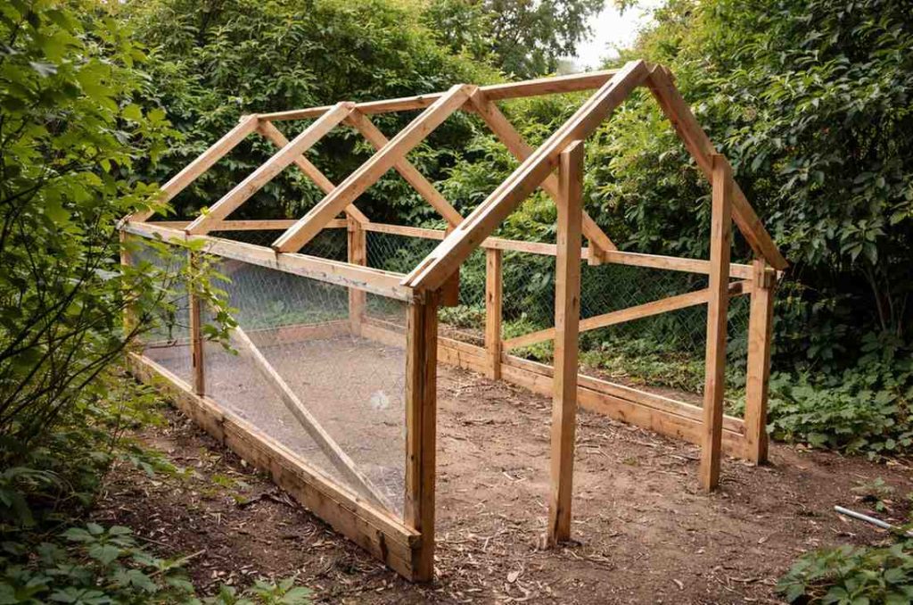 Decide how much you want to spend and what materials you already have. Pallets, scrap wood, old windows, or PVC pipes can significantly cut costs.