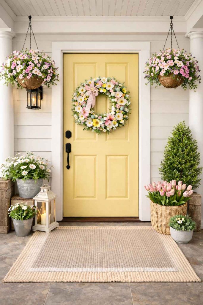 A small spring sign adds personality without trying too hard. Something cheerful or welcoming instantly makes your porch feel friendly.