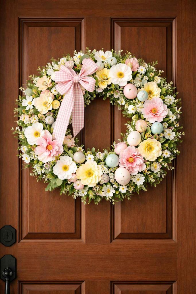 A spring wreath is one of the simplest ways to refresh your front porch. Swapping out heavy winter styles for something light and floral instantly makes the space feel brighter.