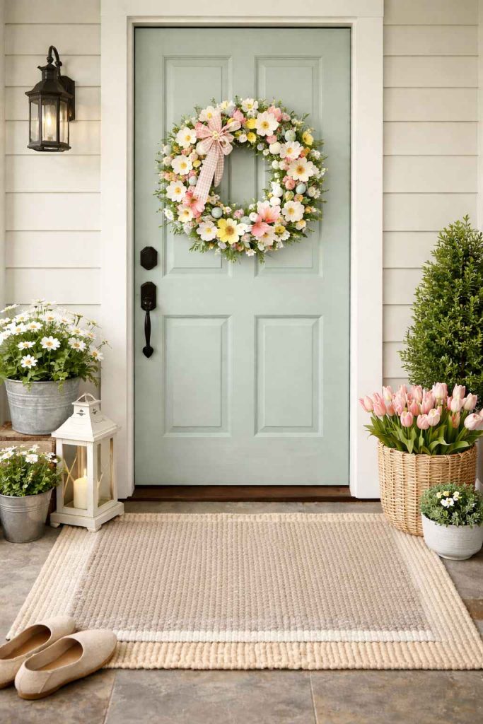 If repainting feels like too much, even temporary touches like pastel wreaths or door accessories can create a similar effect. The goal is to soften the look and bring in freshness.