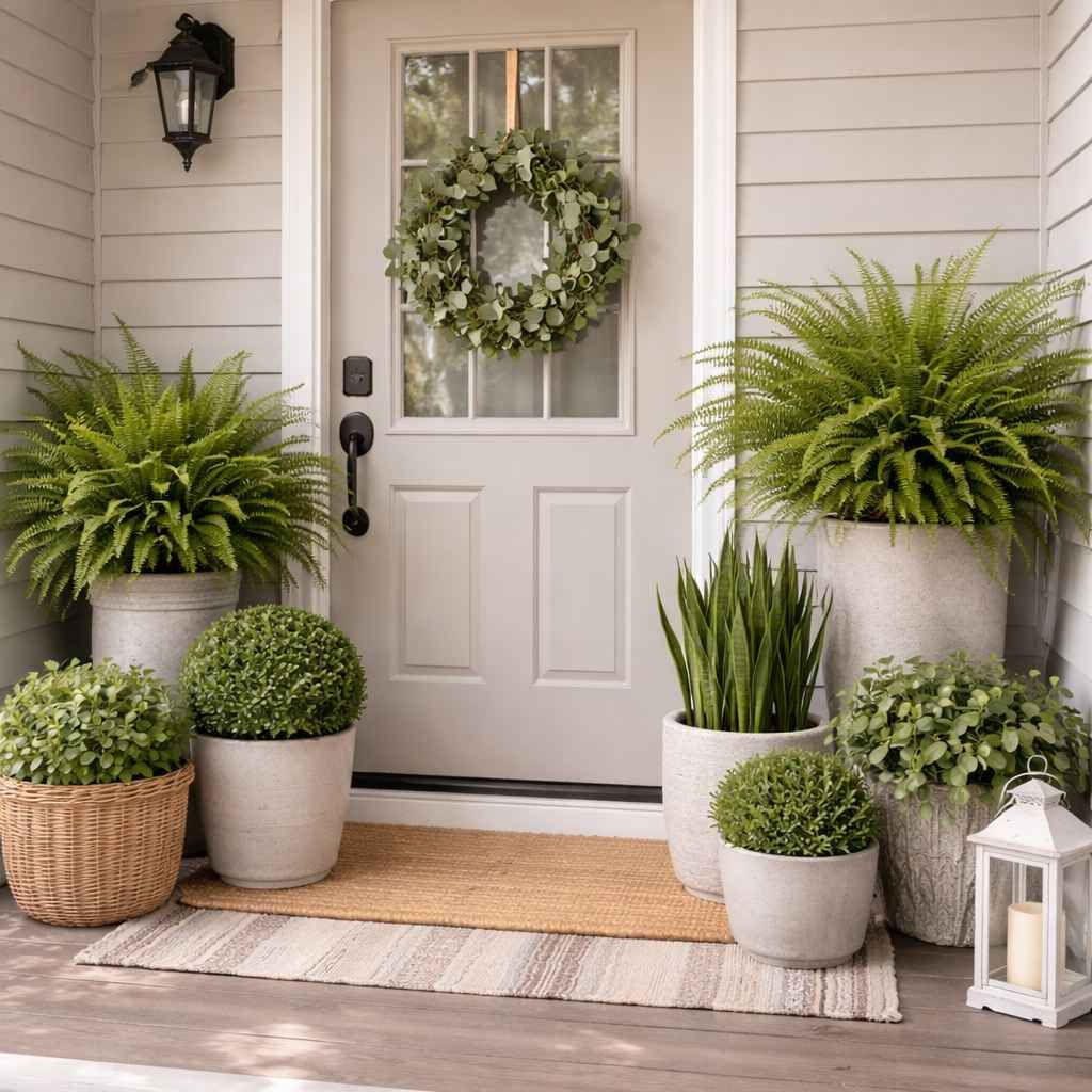 Place planters on either side of your door for a balanced feel, or cluster them in one corner for a more casual setup. Different pot heights can also add depth and keep the space visually interesting.