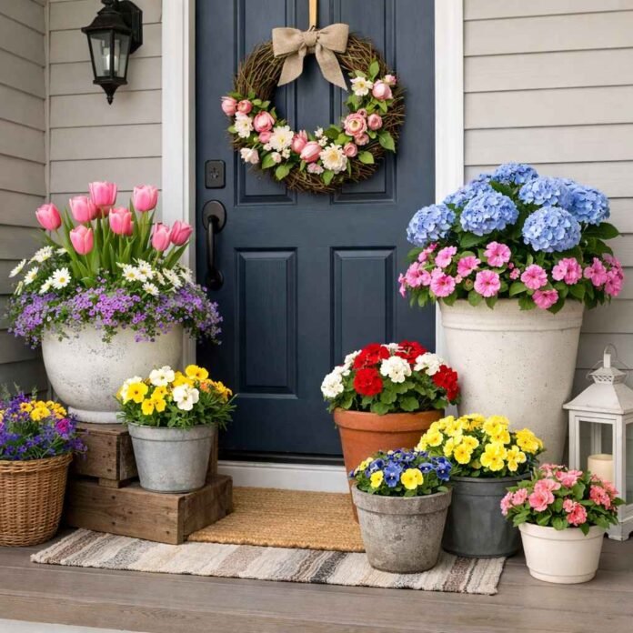 Fresh flowers are one of the easiest ways to bring instant spring vibes to your front porch. They add color, life, and that just-bloomed feeling that makes everything look happier. Even a single planter by the door can make a noticeable difference.