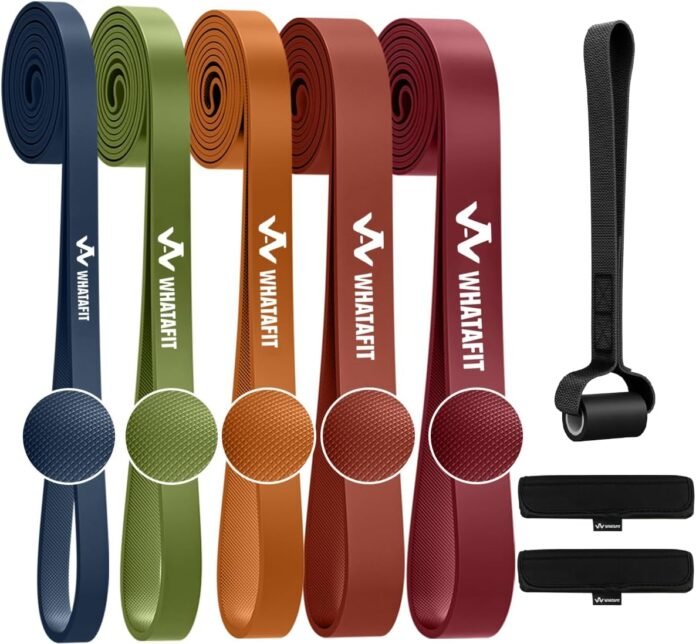 WHATAFIT Resistance Bands,Pull Up Assist Bands Set with Handles, Exercise & Workout Bands with Door Anchor for Men & Women – Home Fitness Equipment for Strength Training, Stretching