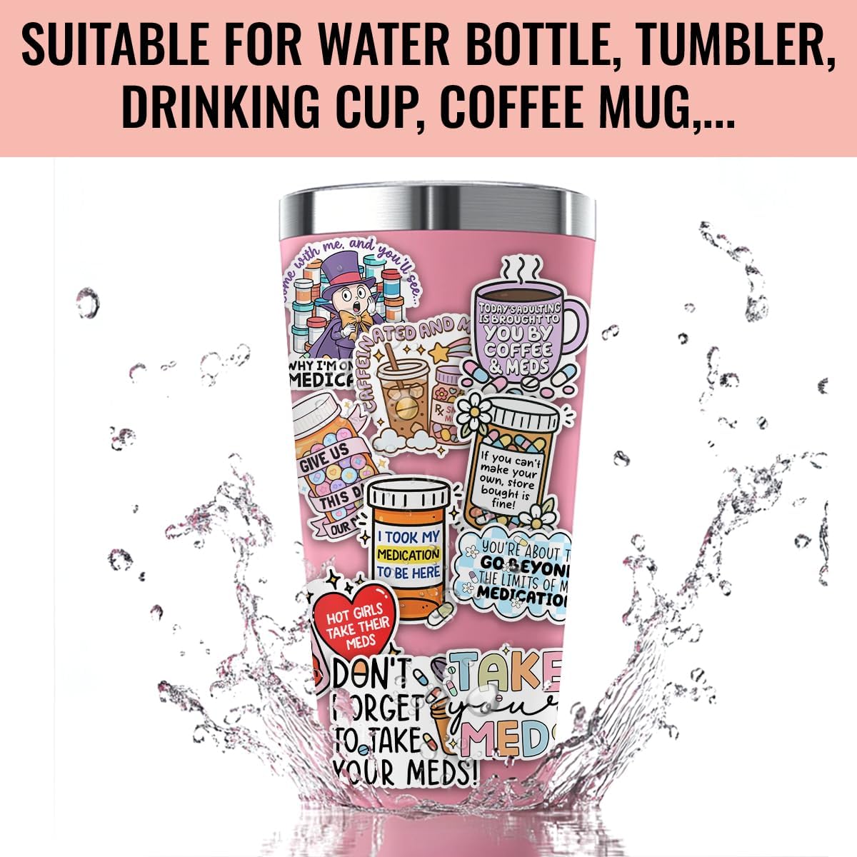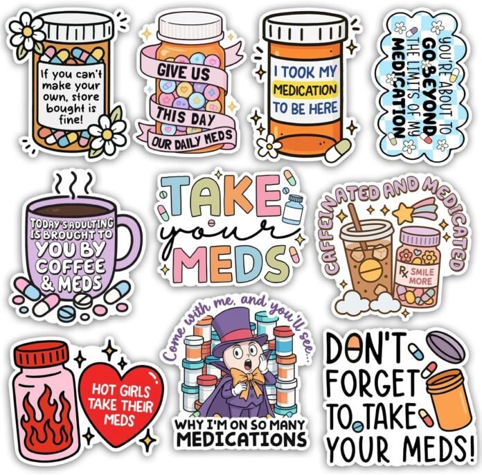 TODOLIA (10Pcs-3in) Medicine Reminder Sticker Pack, Funny Pharmacy Take Your Meds Sticker, Healthcare Medical Nurse Pharmacist Gift, Decoration for Laptop Tablet Office Water Bottle Helmet Vehicles