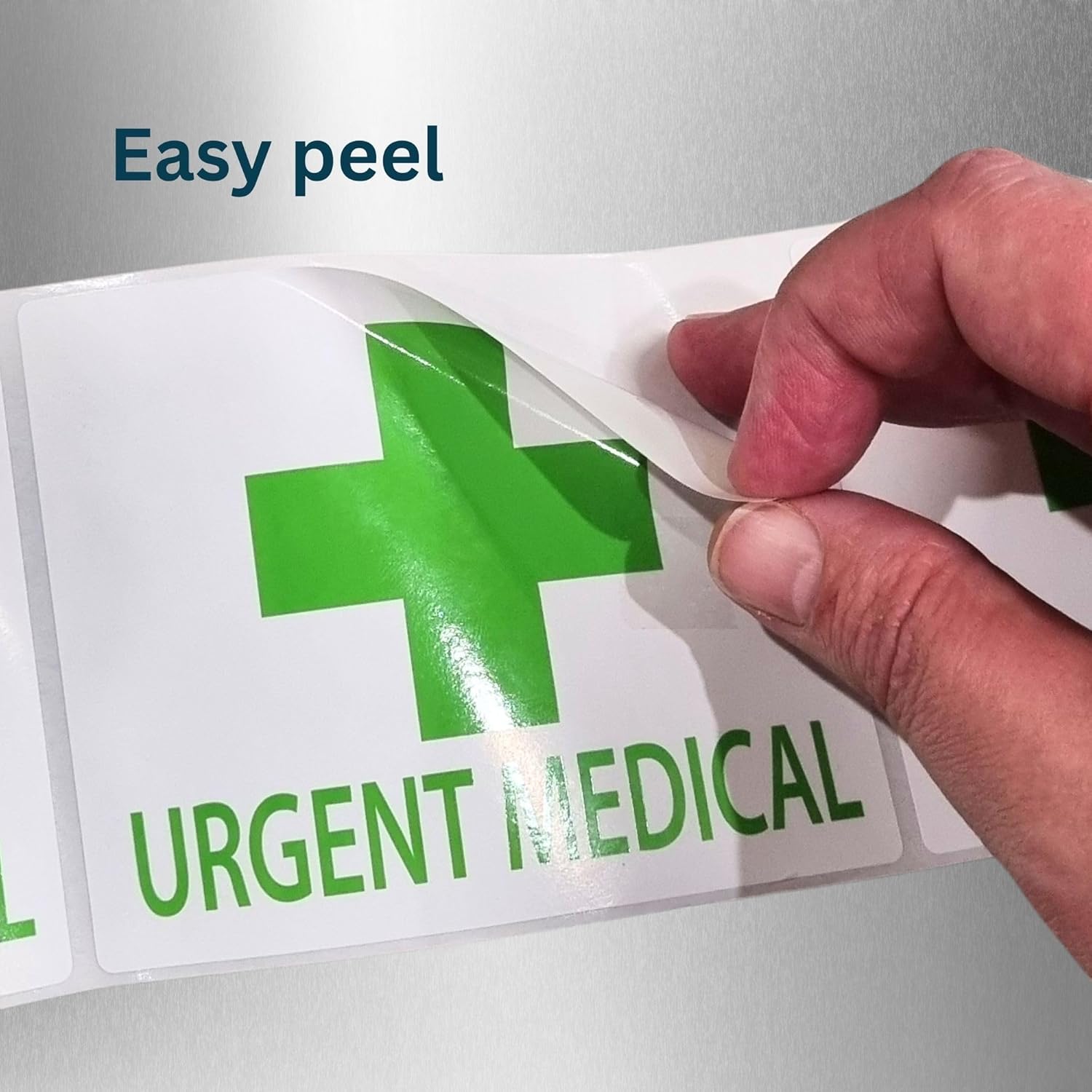 High Visibility: Green cross and “URGENT MEDICAL” text stand out instantly