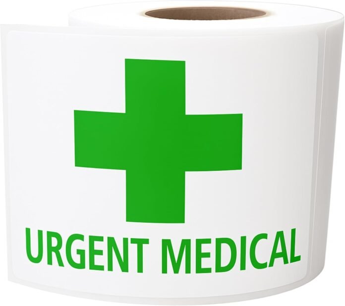 Label Size 80mm x 100mm (approx. 3.1″ x 4″) Material Semi-gloss paper Adhesive Permanent Latex-Free Adhesive Core Size 38mm (approx. 1.5″) Labels per Roll 400 Print Green cross & “URGENT MEDICAL” text
