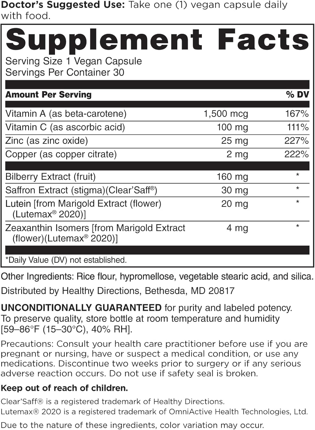 Lutein, bilberry extract, and Clear'Saff saffronLutein, bilberry extract, and Clear'Saff saffron Uniquely comprehensive