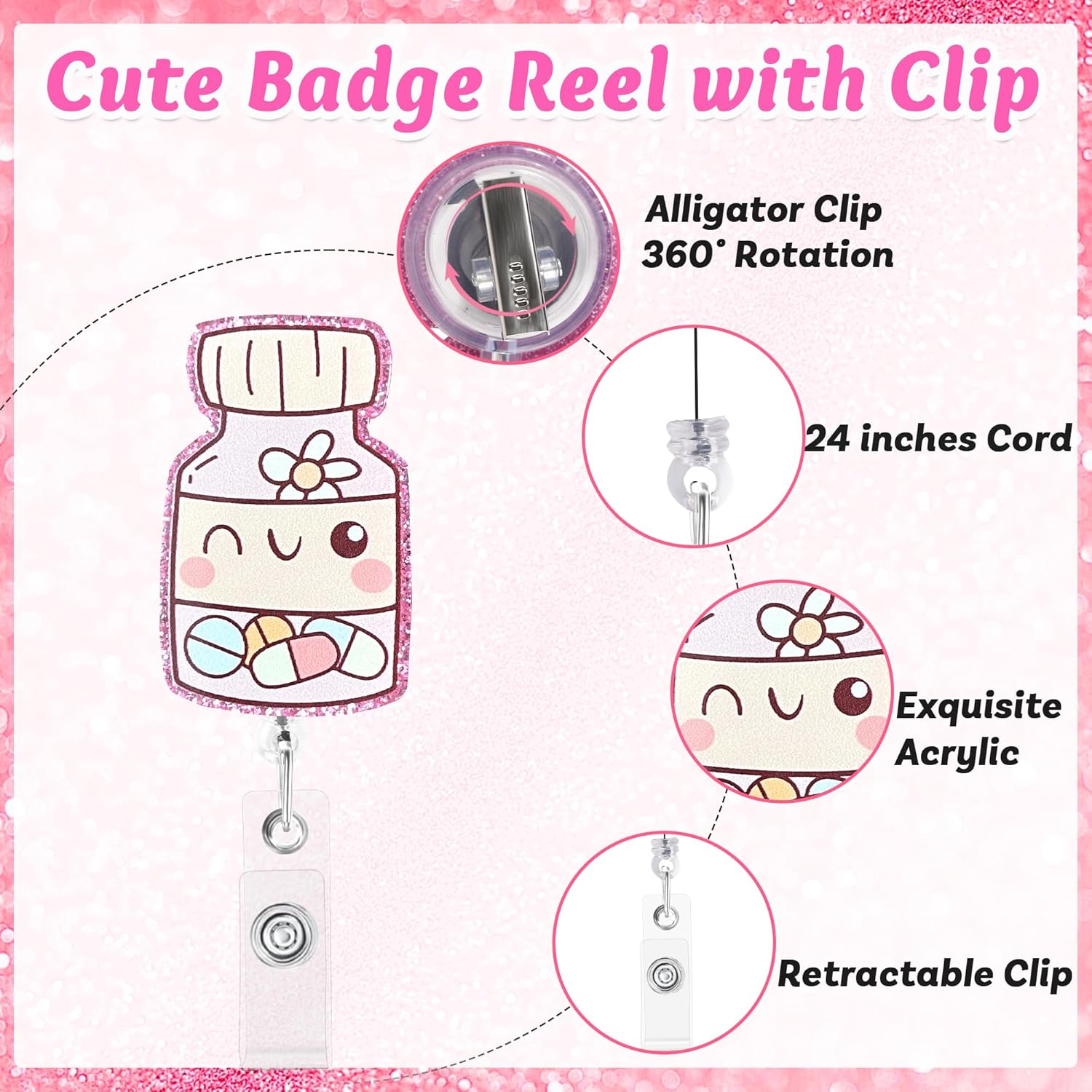 Smooth 24-Inch Retractable Cord – No more unclipping your badge! The retractable cord extends up to 24 inches, making it easy to scan or swipe your ID, time card, or key card in hospitals, clinics, and nursing schools