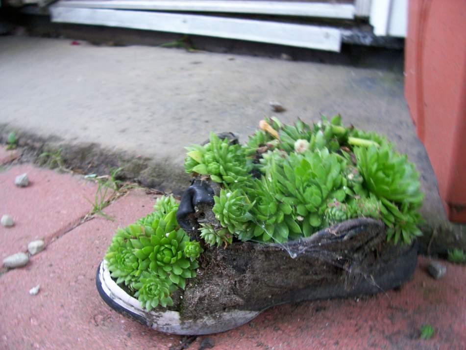 If the sole is sturdy, just poke a couple of drainage holes to keep things from getting soggy. Set it near a doorstep, along a pathway, or tucked between other pots—it adds a bit of personality without trying too hard.