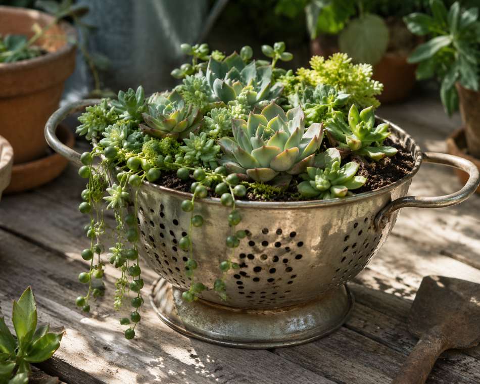 A metal colander might already have everything hens and chicks need—especially when it comes to drainage. Those small holes that once drained pasta water now keep excess moisture from building up, which is exactly what these succulents prefer. It’s a simple idea that works without much effort.
